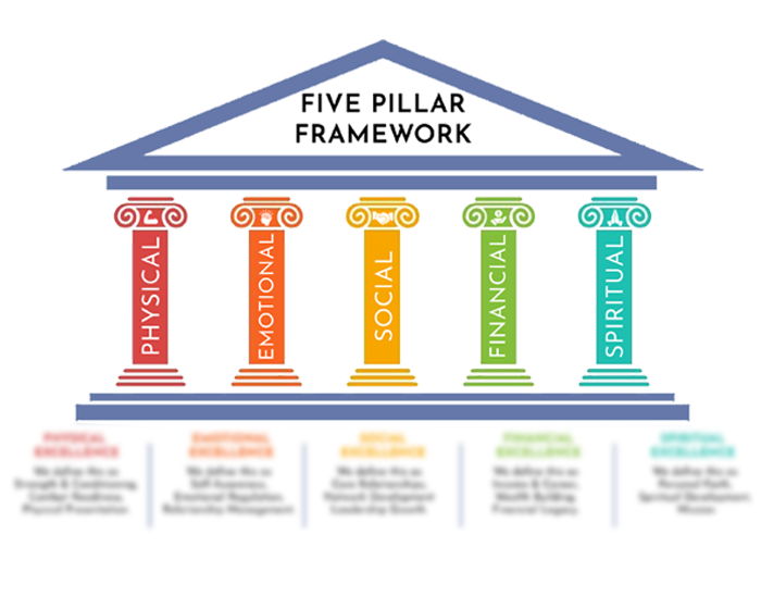The Standard guarantee transformation in the lives of it's members through it's science based Five Pillar Framework. The way it works is that once a member is accepted, he undergoes a 1 on 1 evaluation to identify his biggest weakness using the framework. We then provide each member with a personalized game plan to tangibly grow in his area of weakness. Once he has progressed in the area, we repeat the process by targeting his next weakness until he is a holistic man of excellence.